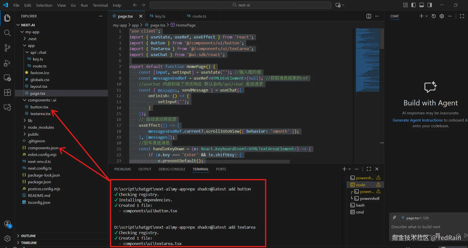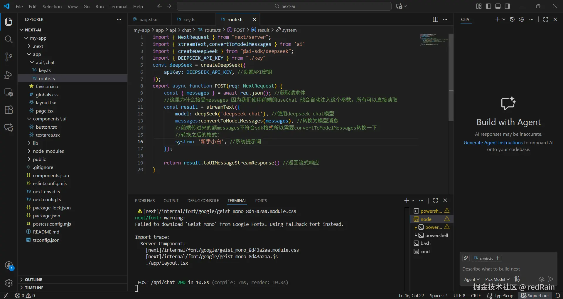 app目录下创建api文件夹,在api目录下创建chat目录,在chat目录创建两个文件,key.ts和route.ts