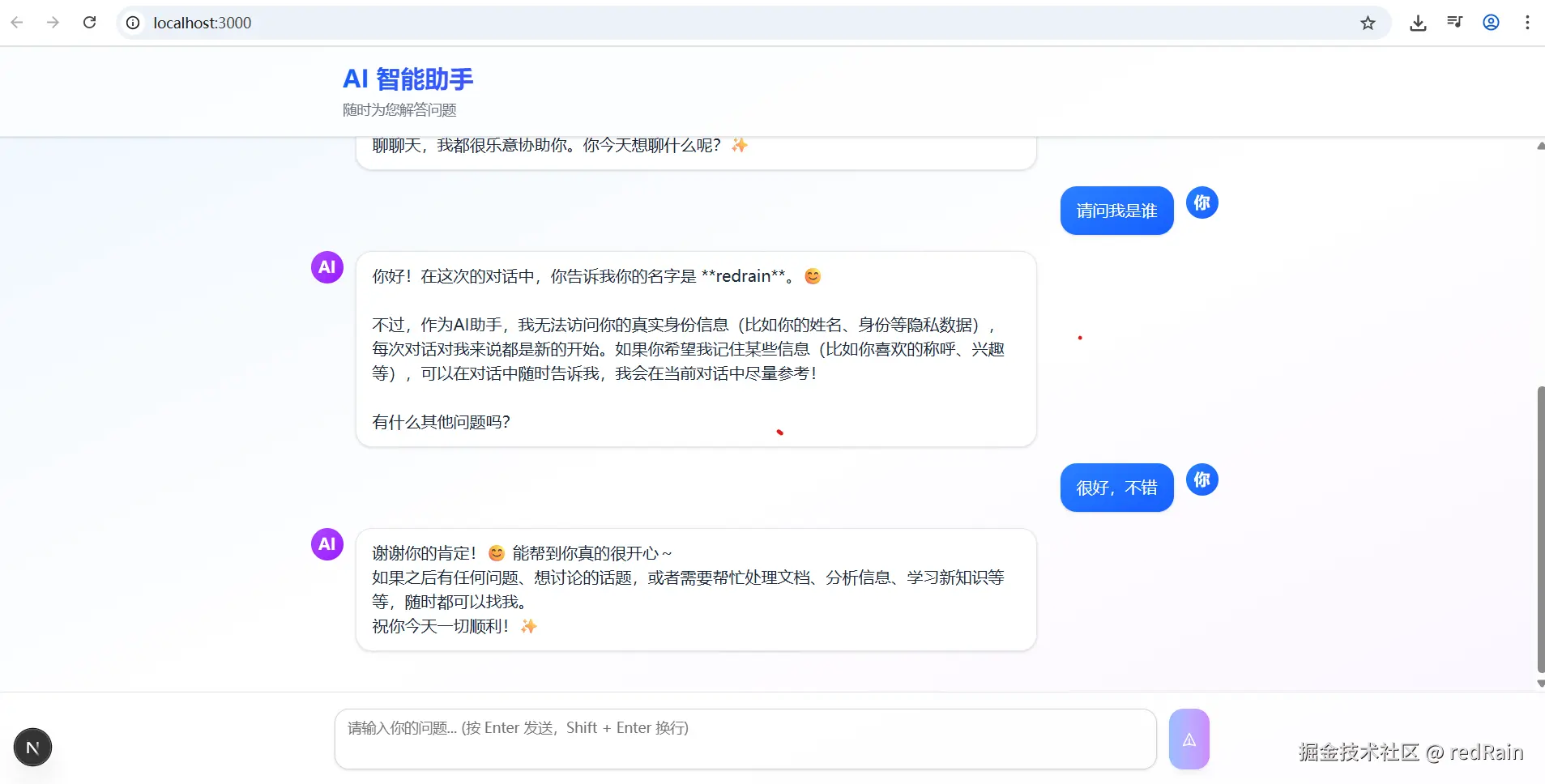 此Demo可以快速嵌套很多小型项目,譬如公司AI智能聊天软件等,其本质是调用大模型厂商提供的模型,对于要求性价比高且无保密性要求的个人和公司很实用。如果你想做出更酷炫的产品,可以进一步了解nextjs。