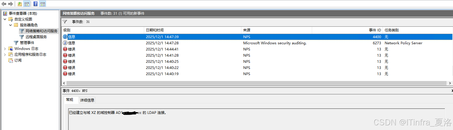 1.清理了一下日志,重启服务器发现在"事件查看器"看不到用户连接日志;但是额能看到一条与服务器建立连接的日志;