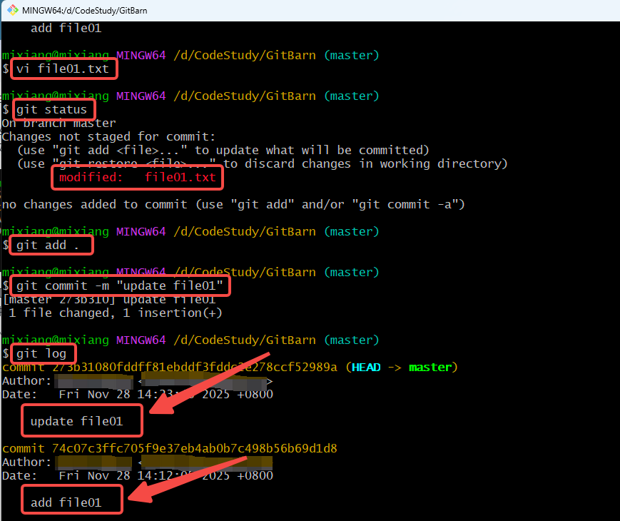 commit(提交):提交到本地仓库。本地仓库中保存修改的各个历史版本