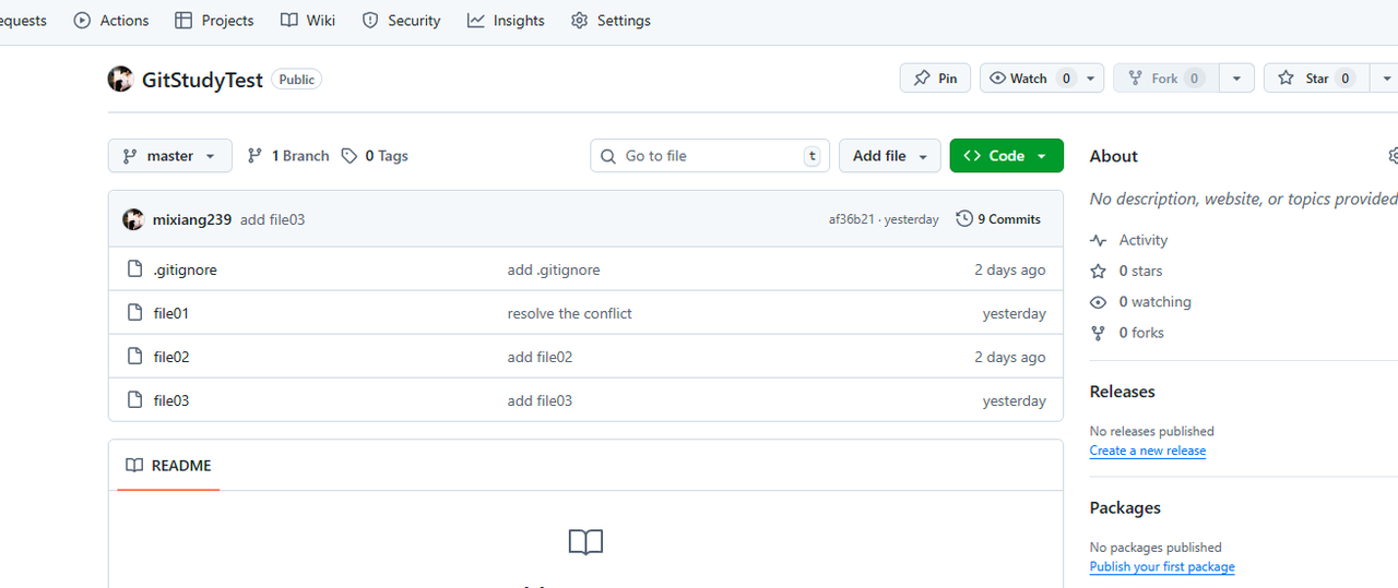 可以看到我们的远程仓库已经有内容了,并且和本地的master分支的内容一模一样。