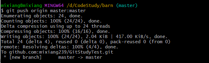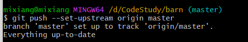 这样本地的master分支已经和远程的master分支关联上了。下次如果在本地master分支上想要往远程的master分支推送时只用输入git push指令。