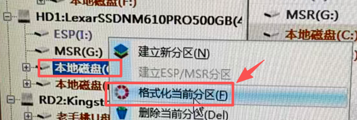 右键格式化ESP引导盘