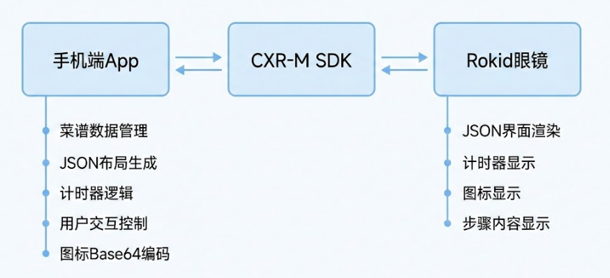 手机端负责所有业务逻辑,SDK只是通信桥梁,眼镜端专注渲染。这种分工很清晰。