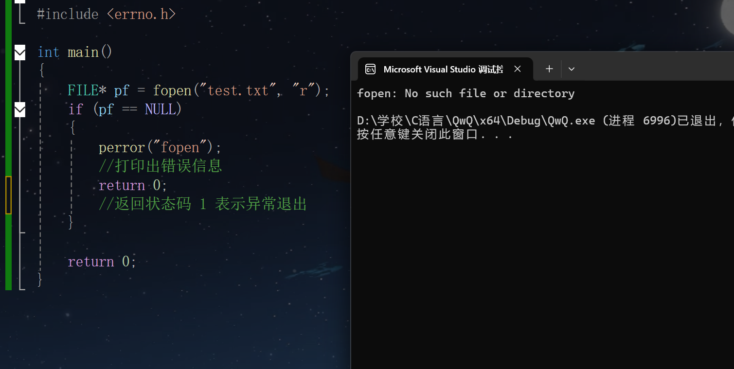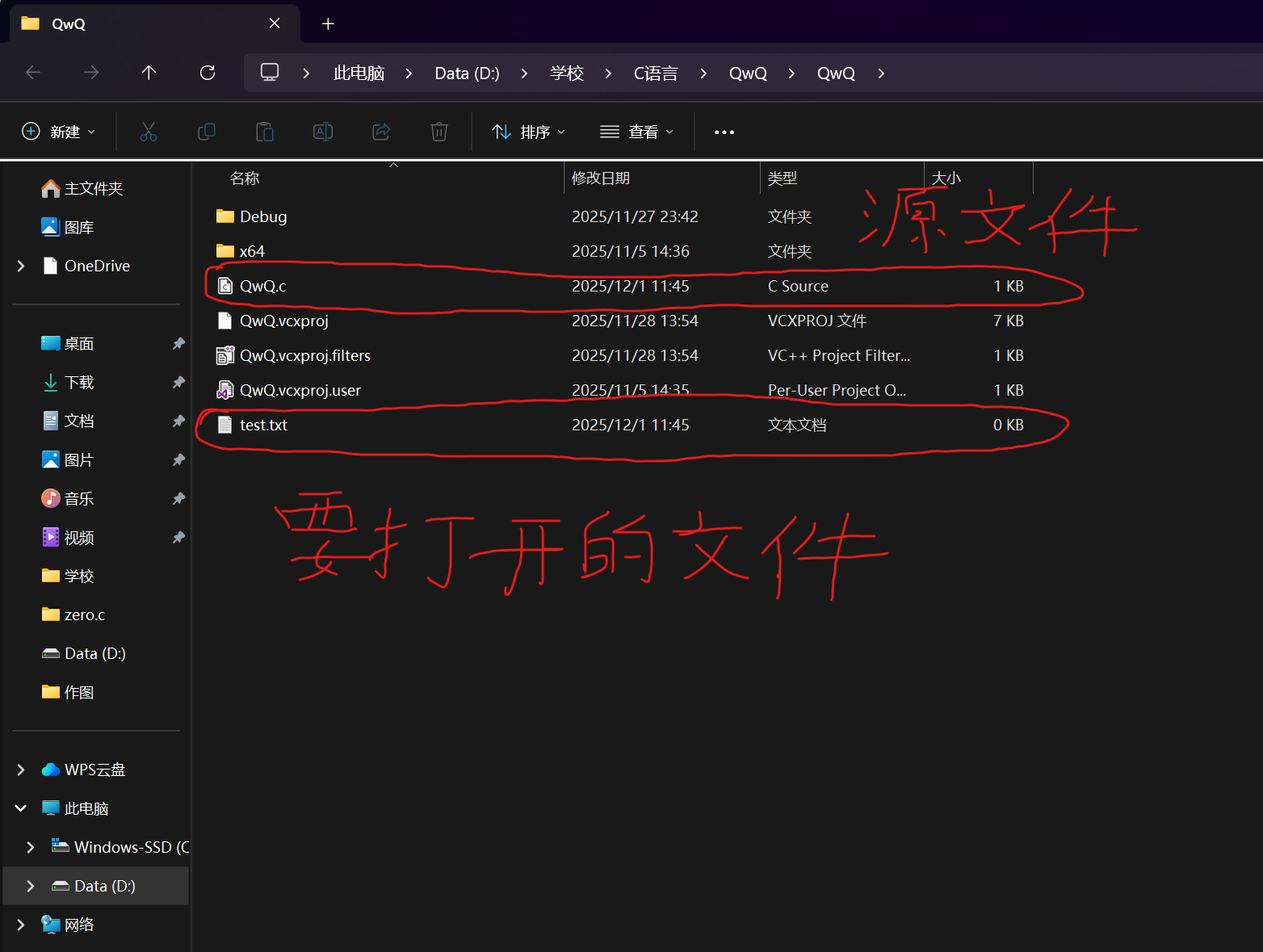 FILE * pf = fopen( "D:\学校\C语言\QwQ\QwQ\test.txt" , " w " ) ;