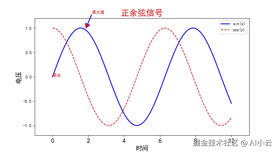 添加文字说明主要用到方法text,注释可以使用annotate方法。