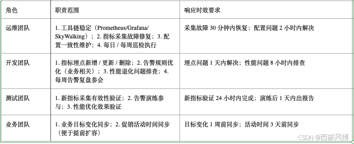 持续看护需跨团队协作,需明确 "责任分工、响应流程、闭环标准":