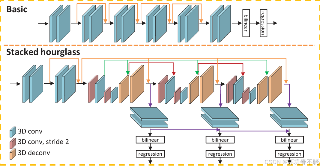 - 借鉴分割任务的思想,在 stereo matching 任务中引入 spp 和 encoder-decoder(hourglass net) 结构来强化 global context information