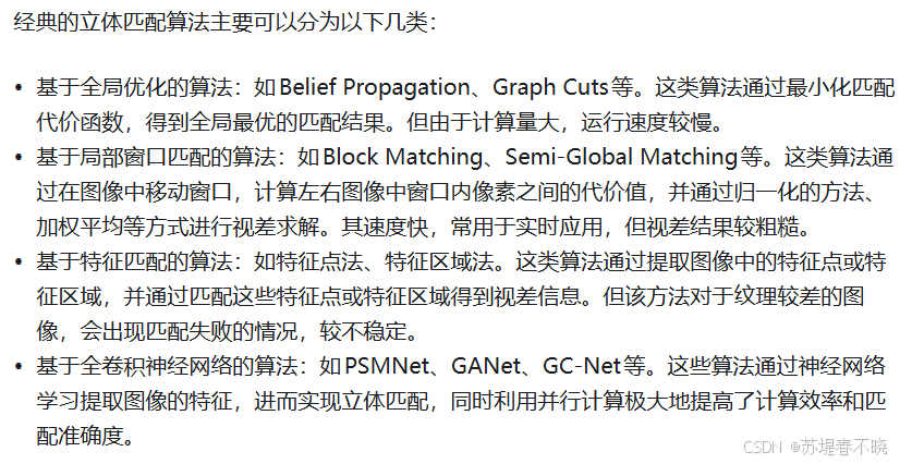随着深度学习的发展,基于卷积神经网络(CNN)的立体匹配方法逐渐成为主流,它们能够通过学习特征表示和匹配函数来提高匹配的准确性