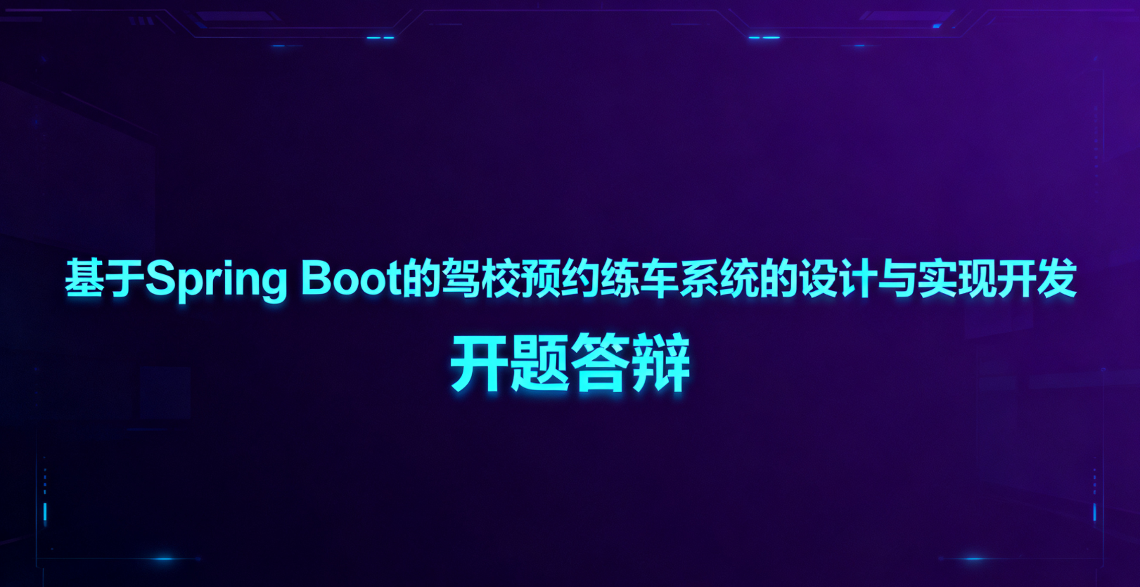 答辩学生:各位老师好,我的题目是"基于 Spring Boot 的驾校预约练车系统"。系统分三类用户:学员、教练、管理员;核心模块是"预约练车",连带暂停预约、出车/还车登记、练车评分。技术栈用 Java + Spring Boot + MySQL,前端暂定 HTML+Bootstrap,IDEA 开发,Maven 管理依赖。