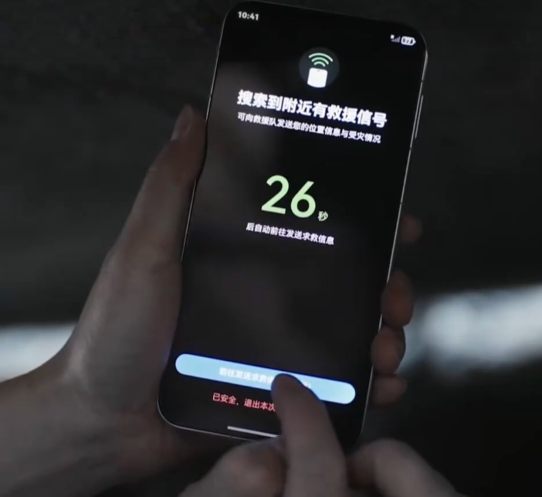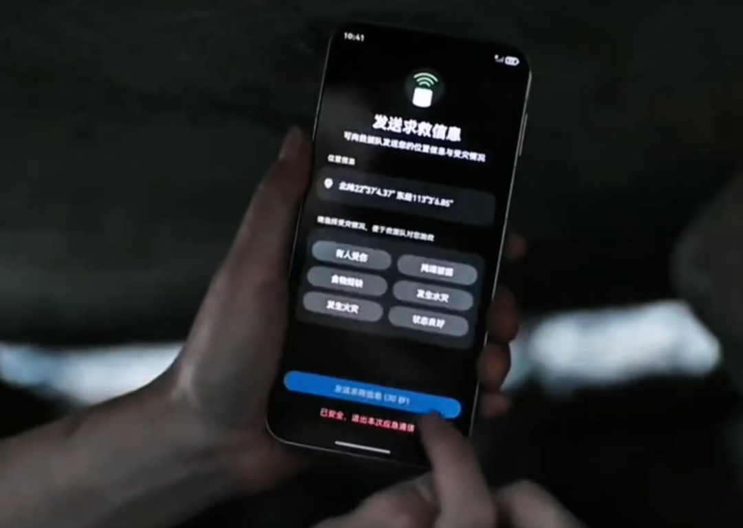无网应急通信的具体使用方式,华为并没有给出完整的说明,但是,在发布会上,播放了一个视频短片,可以大致了解一些细节:
