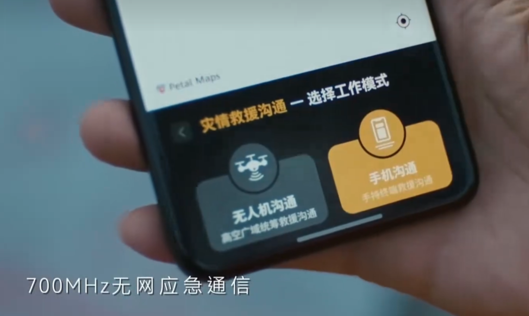 这说明,这个无网应急通信可以支持无人机搭载临时基站,进行区域内通信的能力。视频并没有详细介绍这一部分。