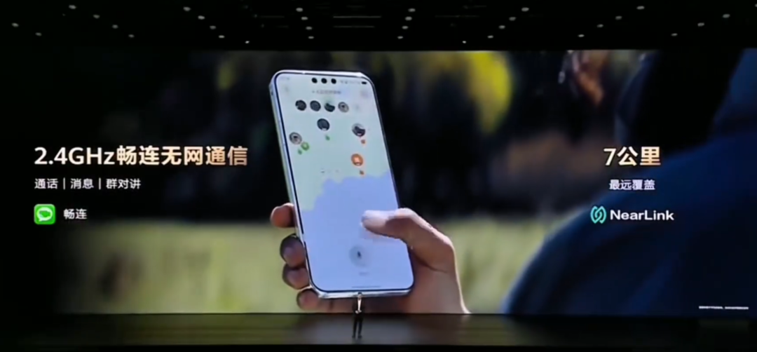 前一种,其实和其它手机终端厂商去年提的无网通信比较类似。主要区别在于,华为使用的是NearLink星闪技术体系,可以打电话、发消息、群对讲,最远可以覆盖7公里。