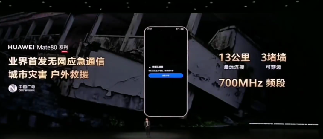 其次,华为Mate80系列能达到这么强的无网通信技术指标,主要在于它使用了被誉为黄金频段的700MHz频段。而这个频段,来自中国广电。
