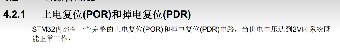 这个意思时当VDD或者VDDA电压过低时,内部电路自动产生复位,让STM32复位住,不要乱操作。这个复位和不复位之间,设置了一个40mv迟滞电压。大于上线POR时解除复位,小于下限PDR时复位。这是一个典型的迟滞比较器。设置两个阈值的作用就是为了防止,电压在某个阈值附近波动。造成输也来回抖动。下面的复位信号Reset是低电平有效的。所以在前面和后面,电压过低时是复位。中间电压正常时候不复位。那么这个电压上线和下限是多少V呢,还有滞后时间是多久呢。