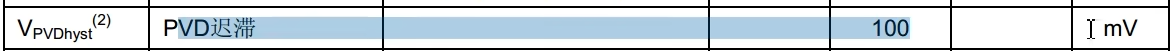 PVD上限和下限的迟滞电压是100mV。可以看到PVD的电压是比上电掉电复位的电压要高的。