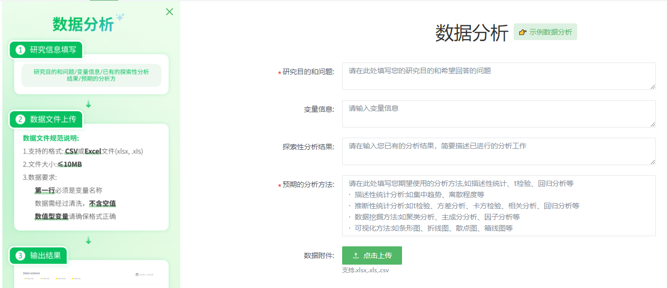 - DataStory Academic 进一步将问题扩展为研究叙事框架:输入"数字普惠金融如何影响农村消费",自动生成"描述性统计→相关性验证→回归分析"的证据演进路径,每一步均标注"该环节需回答什么子问题",确保分析服务于核心假设。
