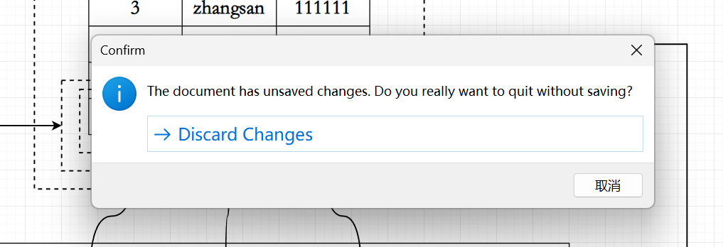 典型的为是当对一个已编辑文件进行退出操作时, 将会弹出弹窗询问是否进行保存;