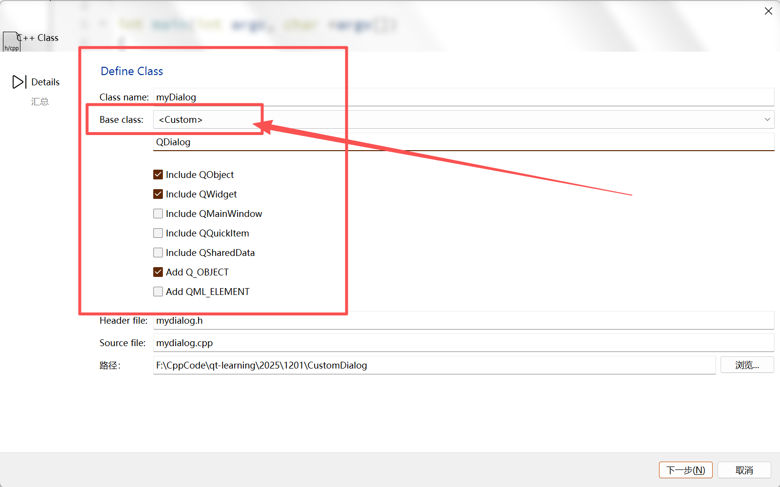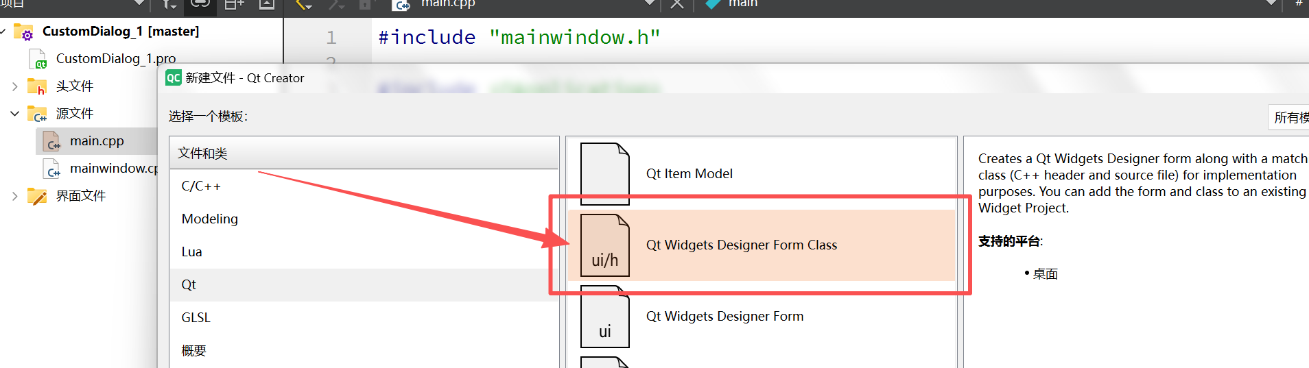 通过纯代码的自定义对话框的方式在QtCreator中的步骤为如下: