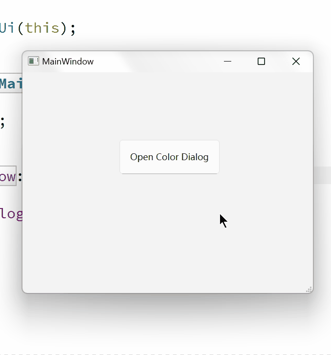 同样的, QColorDialog为了方便使用, 生成了对应的静态函数, 可直接通过QColorDialog::getColor()来打开颜色对话框;