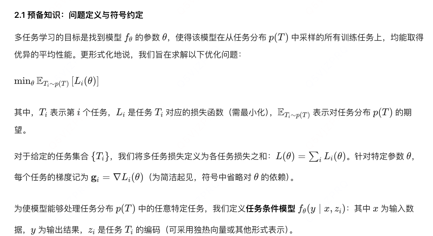 全批次任务覆盖:对当前批次中的每个任务(\(T_1, T_2, ..., T_T\)),均执行上述 "随机遍历其他任务→迭代修正" 的流程,最终得到所有任务的修正梯度 \(\{\mathbf{g}_1^{\text{PC}}, \mathbf{g}_2^{\text{PC}}, ..., \mathbf{g}_T^{\text{PC}}\}\)。