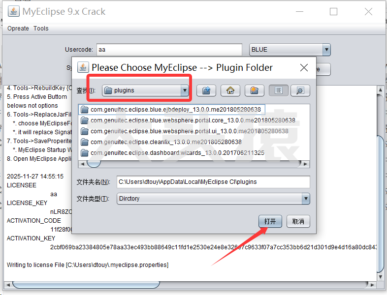 9.打开上面选择的软件的安装位置,进入plugins文件夹