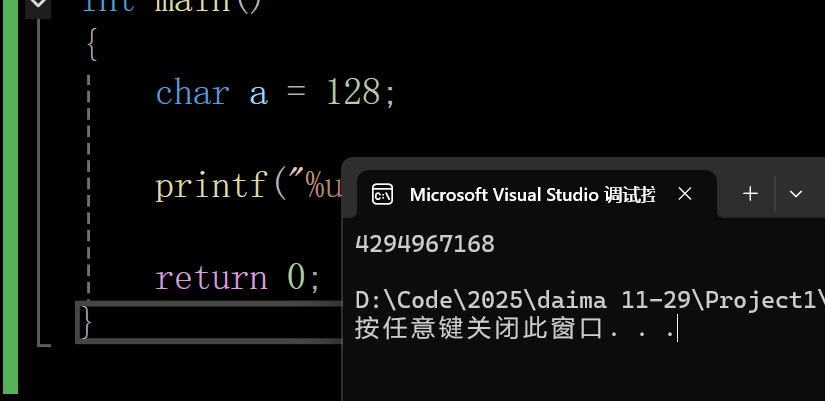 注意:char的有无符号取决于编译器,在vs2上,char默认为 signed char