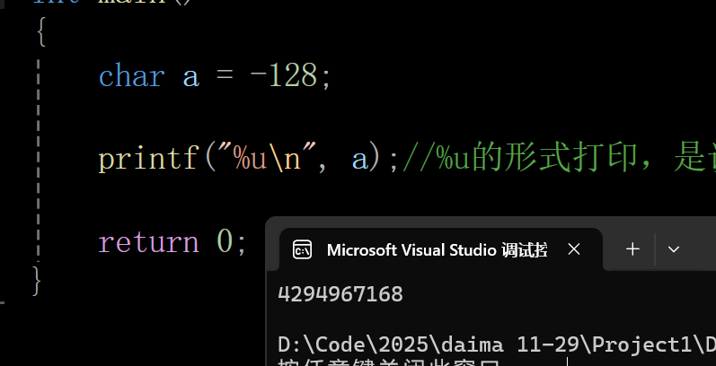 当我们了解了整数在内存中存储后,我们调试看⼀个细节: