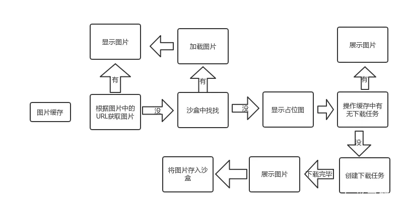 - 磁盘图片缓存有,就加载到内存缓存,没有就下载图片