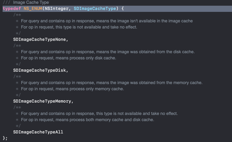 typedef NS_ENUM(NSInteger, SDImageCacheType) {