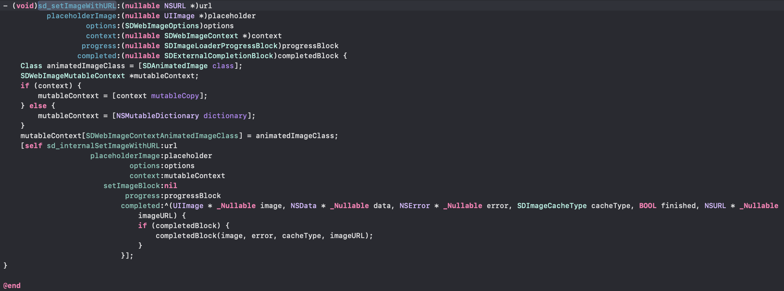 [self sd_setImage:placeholder imageData:nil basedOnClassOrViaCustomSetImageBlock:setImageBlock cacheType:SDImageCacheTypeNone imageURL:url];