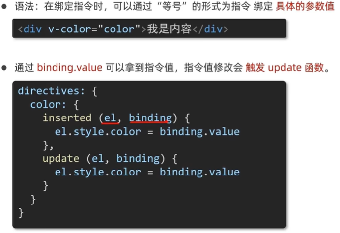 inserted 提供的是元素被添加到页面中时的逻辑;update 钩子是指令的值修改的时候触发,提供值变化后,dom更新的逻辑。