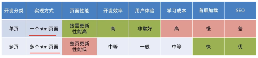 单页面应用程序,开发效率高、性能高、用户体验好,是因为:页面按需更新(要明确访问路径和组件的对应关系 --- 由路由确定)。