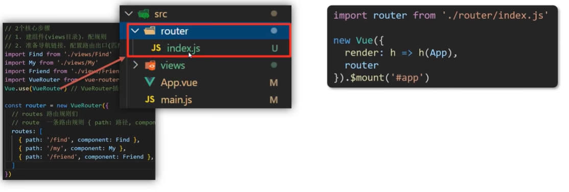 javascriptnew Vue({ render: h => h(App), router: router }).$mount('#app')