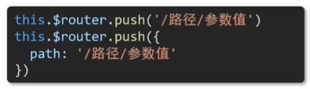 javascript// 简写 this.$router.push('路由路径') // 非简写 this.$router.push({ path: '路由路径' })