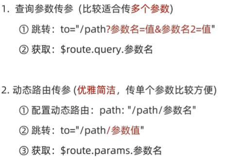 两种方式:查询参数传参(适合传多个参数)和动态路由传参。
