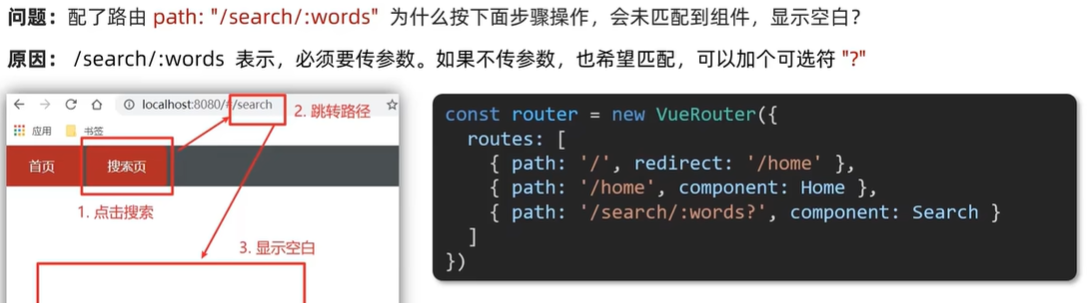 当我们打开网页时,url默认是/路径,未匹配到组件时,会出现空白,此时就需要重定向,匹配到某个路径后,强制跳转到path路径