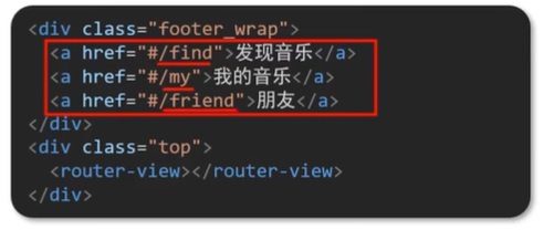 2.配置导航,配置路由出口(路径匹配的组件显示的位置router-view,路径要和上面地址栏路径一致)