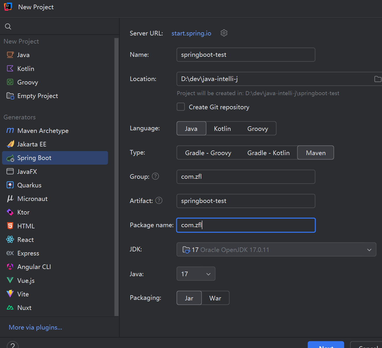 选好name, Java, Maven , PackageName填com.xxx两级即可, JDK版本, jar包, 点击next