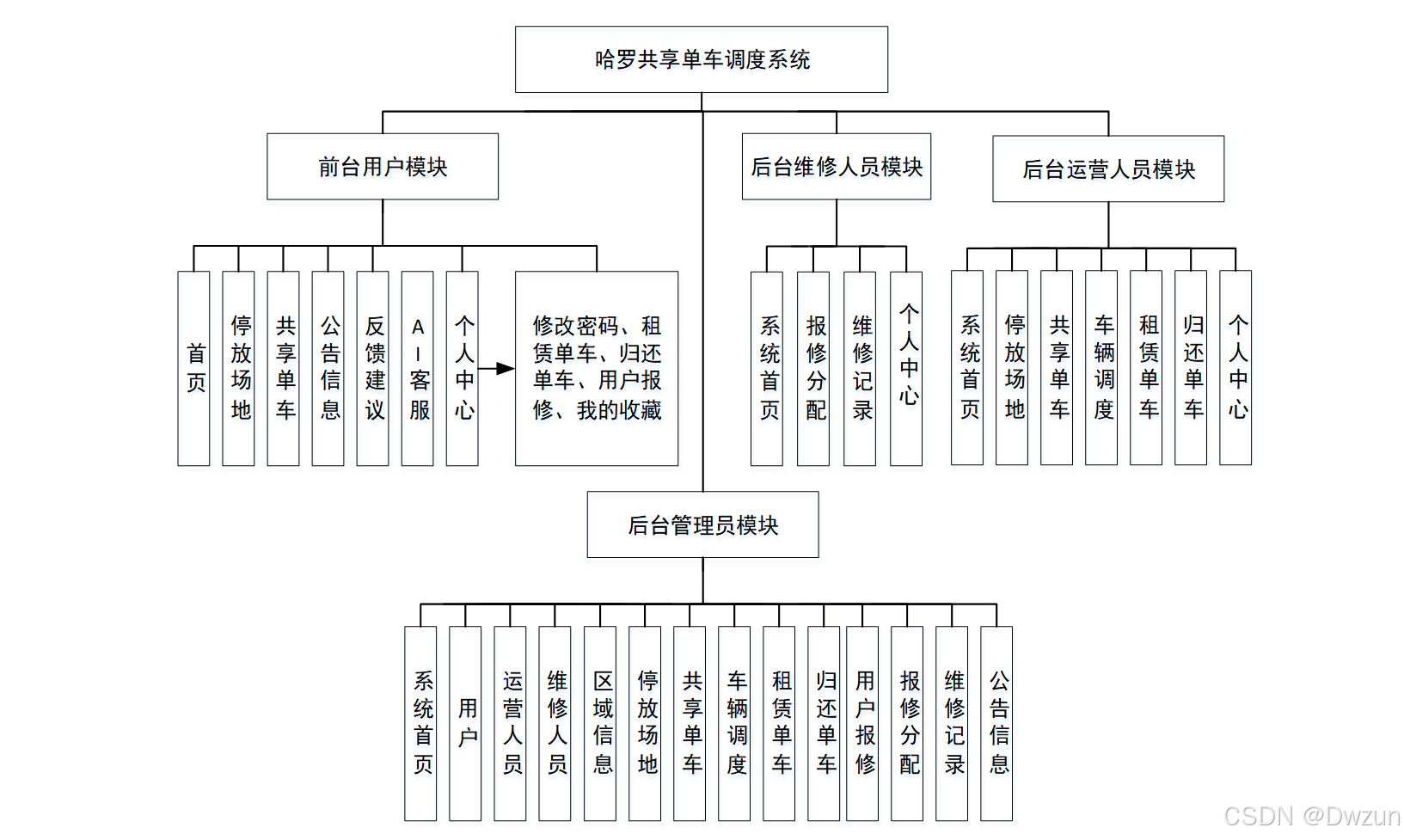 该系统聚焦共享单车的调度与运维场景,通过前台用户实现单车租还与反馈,后台维修人员处理故障维修,运营人员负责车辆调度,管理员统筹全系统资源,实现共享单车从用户使用到后台运维的全流程数字化管理,提升车辆运营效率与用户体验。