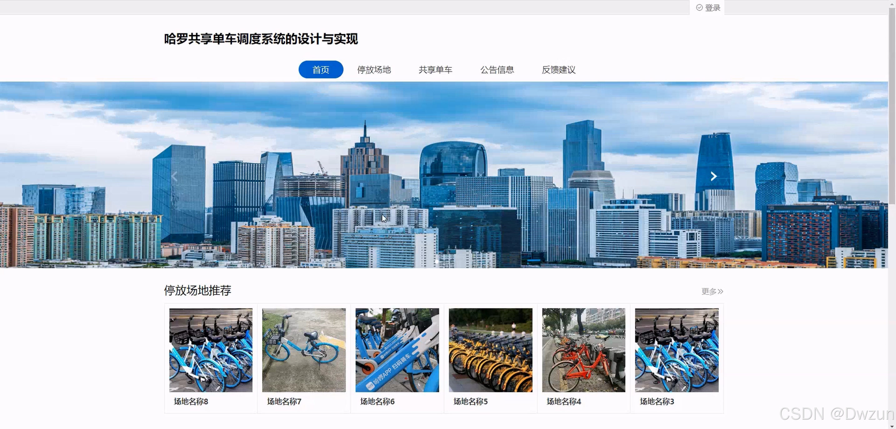 前台用户模块 基础功能:首页、停放场地、共享单车、公告信息、反馈建议、AI 客服 个人中心功能:修改密码、租赁 / 归还单车、用户报修、我的收藏