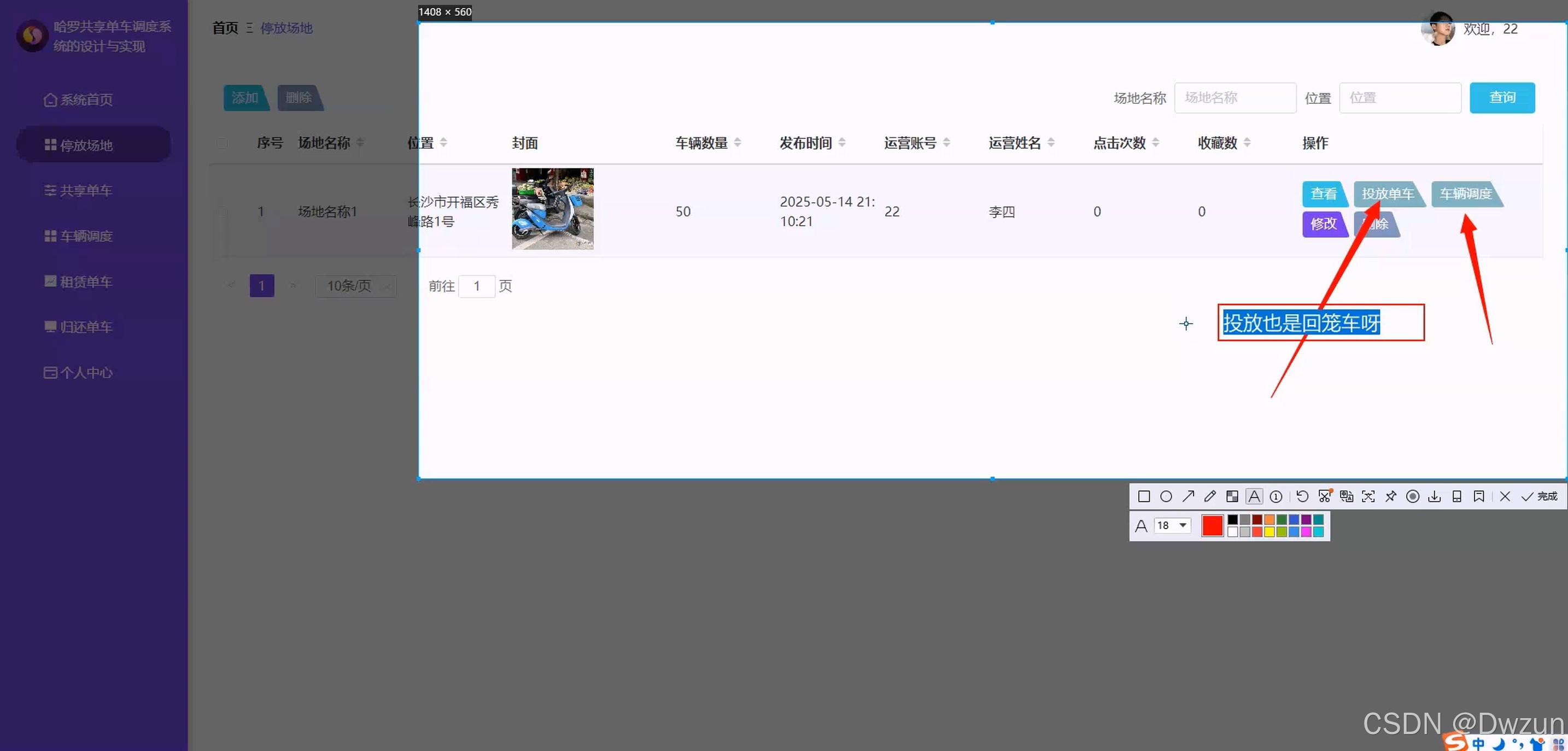 后台运营人员模块 运营调度功能:系统首页、停放场地管理、共享单车管理、车辆调度管理、租赁 / 归还单车管理、个人中心