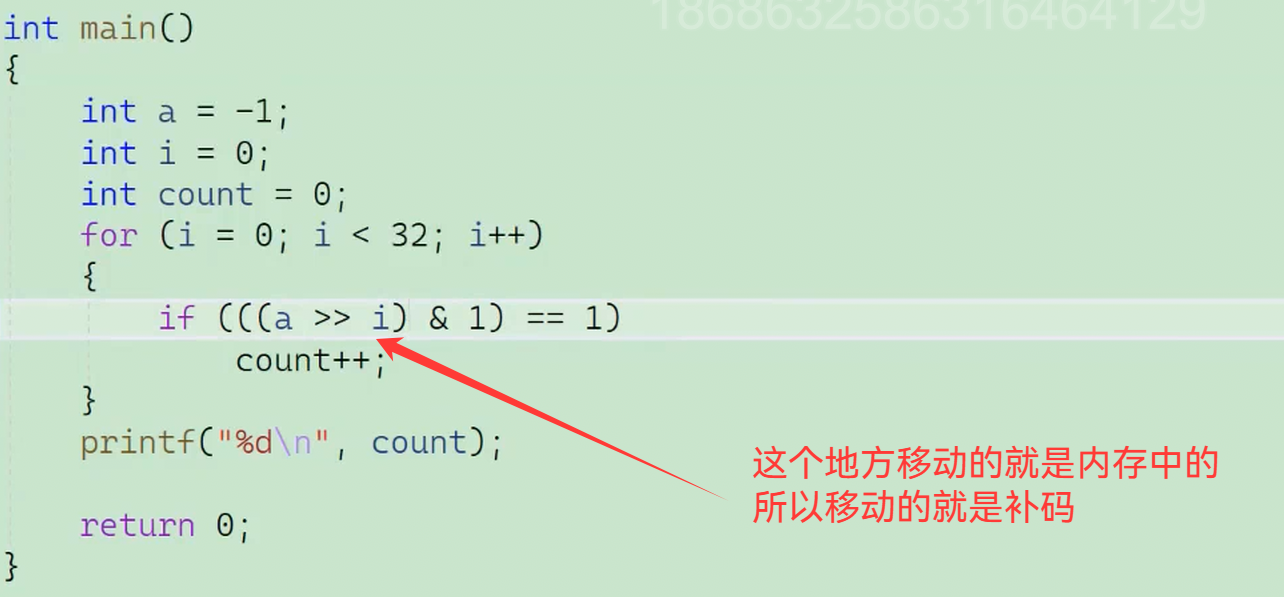 //求一个整数存储在内存中的二进制中1的个数