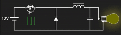6.最后把机械开关换成mos管。给栅极加入PWM波,调整PWM波的占空比,就可以改变输出电压。