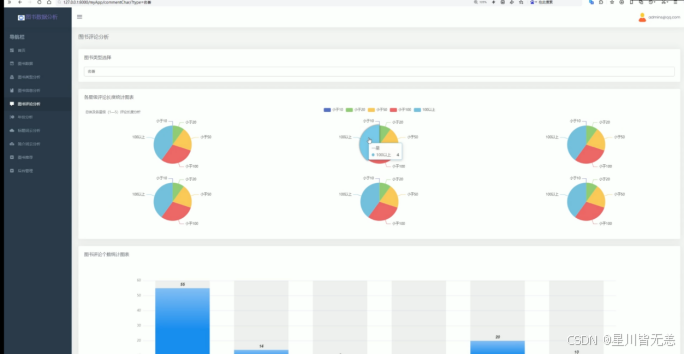 此外,本系统利用Echarts等可视化工具,展示了多维度的图书数据分析结果,帮助用户更直观地了解图书信息的分布和变化趋势。同时,系统还提供了图书推荐功能,基于分析结果为用户推荐相关书籍。通过该系统,用户不仅能够获取丰富的图书数据,还能深入分析图书背后的信息,进而做出更为理性的选择。