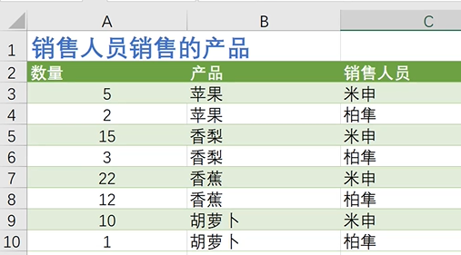 =SUMIFS(A3:A10,B3:B10,"<>香蕉",C3:C10,"米申")