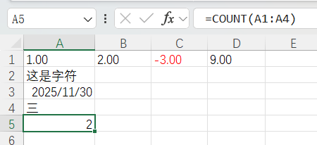 只有 数值1.00 和 日期 2025/11/30 被统计。