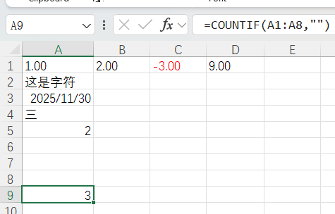 - 包含返回 ""(空文本)的公式的单元格也会计算在内。